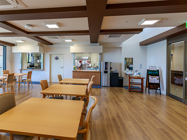 周ふれあいの杜さがみ湖には、ご入居者同士の交流の場として1階のラウンジのほか各階にコミュニティスペースが設けられています。最上階となる4階にはレストランがあり、季節の食材を使った手作りの管理栄養士監修メニューをご提供しています。こちらには無料でご利用可能な特別室を設けており、ご友人やご家族との会食などにご利用いただいています。ご家族の宿泊も可能です。(要ご予約:1泊5千円) ほか、敷地内の外構に家庭菜園や園芸ゾーン、屋上テラスにはバーベキュー設備、1階にはカラオケルームやトレーニングジムもあり、ご入居者様は無料で利用可能です。さらに1階には理美容室、コインランドリーもご用意し、館内に居ながらにして交流や健康増進の機会が得られます。近隣での買物や食事に出かけられる場合は、送迎サービスをご利用いただけます。